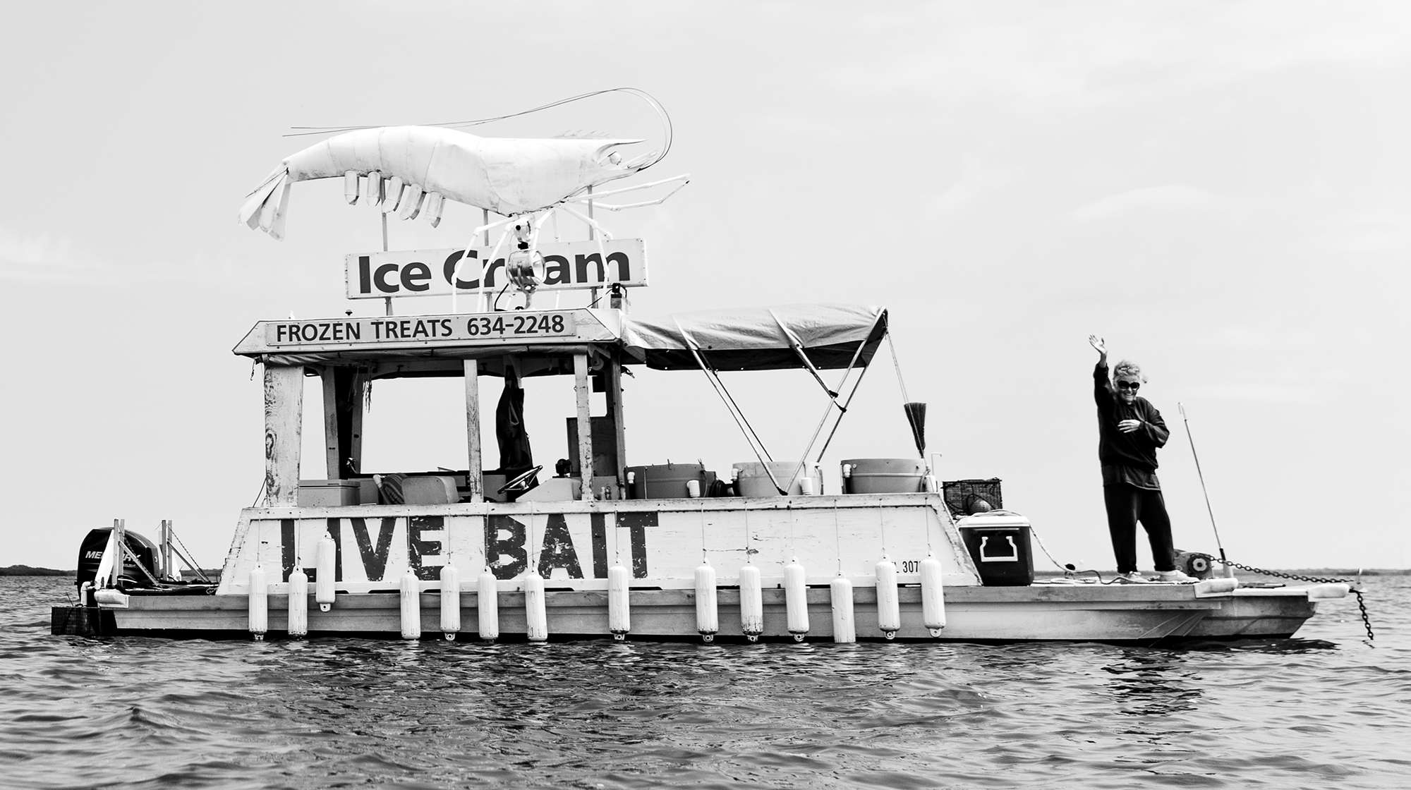 A former sculptor, local legend Bonnie Van Allen sells bait and ice cream on the Homosassa River