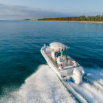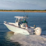 Rated for up to 450 ponies, hull No. 1 has Yamaha’s 425-hp XTO mounted on a jackplate for a top end of 60 mph. It burns 10.8 gph of fuel at 31 mph while turning 3,500 rpm. The standard 97-gallon fuel tank can be increased with an additional 31-gallon tank for those who venture farther offshore.