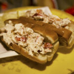 (Above): Charter skipper Barry Gibson (left) and Stu Bristol enjoy the traditions of a good smelt camp, which include red hot dogs, fried smelt and lobster rolls.
