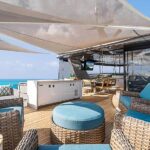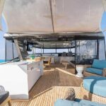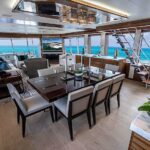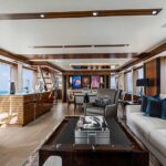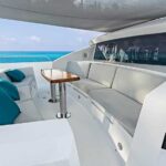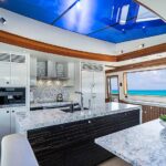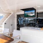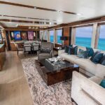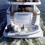 SnowGhost is the next generation motor yacht from Hatteras Yachts. The M90 Panacera series is featured in several Yachting articles and even received 2018 “Best of the Best Award”. This is a fully loaded yacht that features a huge hard top with climate control. The outdoor beach club style spaces with sail shades on the upper aft deck and bow area are amazing for entertaining large groups.
