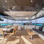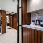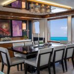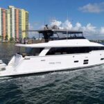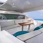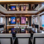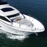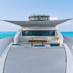Breakthrough design ushers in a breathtaking experience aboard the Hatteras M90. The latest model to enter the Hatteras fleet, this stunning open-concept features a crisp, light-filled interior that strikes a perfect balance of dramatic form and ingenious function. The M90 incorporates an inspiring range of global design influences to create new uses of living, dining and entertaining spaces. Distinctive features include signature skylights as well as a sweeping staircase to the expansive bridge. An amazing play is created between the interior and exterior spaces, which include a modular bar on the aft deck and ample lounging space on the side decks and bow. The impact of the massive 22’6″ beam is felt throughout, including in the four luxurious staterooms.