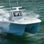 “It was a bold decision, given that power catamarans are considered a niche market,” says vice president of sales Bill Cordes. “But [company founder Alex Lipworth] saw it as an opportunity to reach customers who fit in our core demographic of serious fishermen and divers. We hang our hat on building the fastest, driest and most comfortable open fishermen, but that claim doesn’t have to limit us to building a single hull form.”