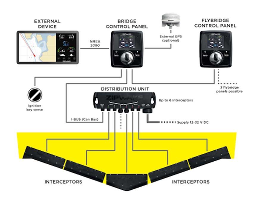 Zipwake Series S Dynamic Trim-Control Complete System Kit (Available with Straight or Chine Interceptors) incorporates a state of the art series of durable, fast-acting interceptors, eliminating the well-known trim problems of planing and semi-planing boats between 20-60 feet.