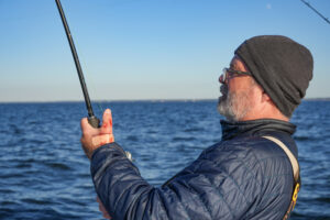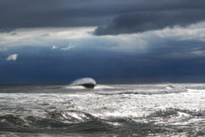 You’ll know a blitz when you are in one. The action is so intense your mouth goes dry. You calm yourself and take it all in. You time your cast so it lands just after the last wave of the set explodes on the bar. That’s when bass and bait create wonderful pandemonium in the white water. You work a weighted, soft-plastic swim bait that matches the hatch. You turn the handle three or four times and set up on a nice fish. If you’re lucky, no one is crowding you. You smile as the striper rips off line and the drag utters its small, mechanical yelps. Then you just gaze at the frenzy, burning it into memory. It’s the promised land for aging striper guys.