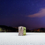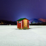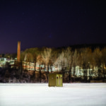 Colombian-born photographer and part-time Vermont resident Federico Pardo in 2016 began documenting ice shanties on a frozen floodplain of the West River in Brattleboro, known as the “The Meadows.” Over the course of two winters, Pardo photographed shanties using long-duration exposures, beginning his work after sunset and continuing long into the night. The resulting images, lit by both sunset and moonlight, carry a surreal quality of blended night and day. Pardo’s work comprises the museum’s Ice Shanties: Fishing, People & Culture exhibit, presented in partnership with Vermont Folklife Center.