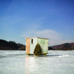 There is ice that I seek. I am not interested in a thousand shacks and a thousand faces. I don’t want a social scene of barbecues and snowmobiles. My favorite sheet of ice is spare, almost serene. I see the houses along the bank, the chimneys and the smoke from wood fires. I see the winter trees. I see the shacks and a few lone shapes making their rounds to check their tilts. I see people with heavy coats staring into holes, hands in pockets, rocking on their feet.