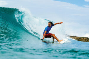 Professional surfer Evan Geiselman runs from the waves to find fish in skinny waters.