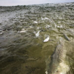The bunker, which ranged from 2 to 14 inches, were so thick that a lure dropped in their midst went unnoticed in the melee. Those who caught bass worked the edges of the bait schools, Lynch says. “A friend of mine made 15 casts and caught 15 stripers,” he says.