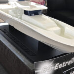 Here’s a model-size version of the next center console from Scout, a 53-footer capable of taking five outboards.