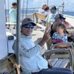 Conditions were perfect and the entire group enjoyed their time on the water. Dana and the mates unhooked fish, called out catches and joined in the fun. Then out of nowhere the boat lunged forward. Dana hustled back to the wheelhouse. I looked around and didn’t see my son. My first thought was, please don’t be Cooper. I followed Dana toward the cabin and sure enough, Cooper had managed to jump into the captain’s chair, put the diesel engine in gear and hammer down the throttle.