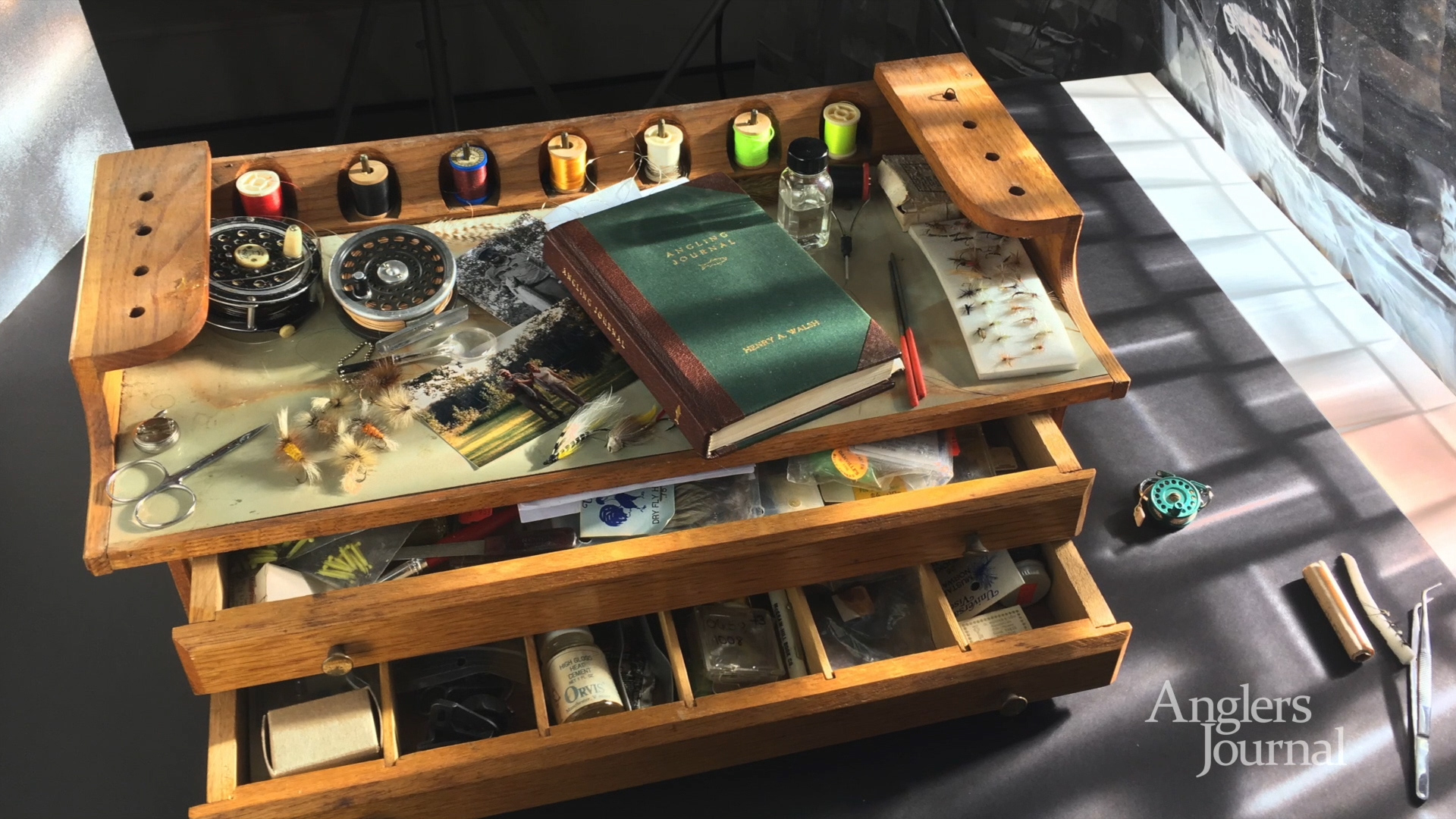 Anglers Journal Behind the Scenes at Jody Dole’s studio in Chester CT, shooting a series of still life photos for Anglers Journal magazine, telling the story of 3 anglers who are no longer with us through images of their tackle.