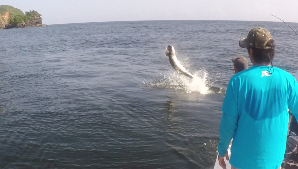Watch the aerial action with big tarpon off Trinidad and Tobago. Hold on!