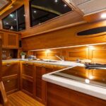 Pairing seamlessly with her advanced construction is the remarkable craftsmanship and attention to detail found throughout the entire yacht. The Grand Banks marque is known for our fine timber joinery, and we have carried this quality through every facet of the boat from the bulkheads and fixed furniture that is fused and bonded to both the deck and hull, to the highly engineered and finished engine room. Beauty and quality is not just skin deep.